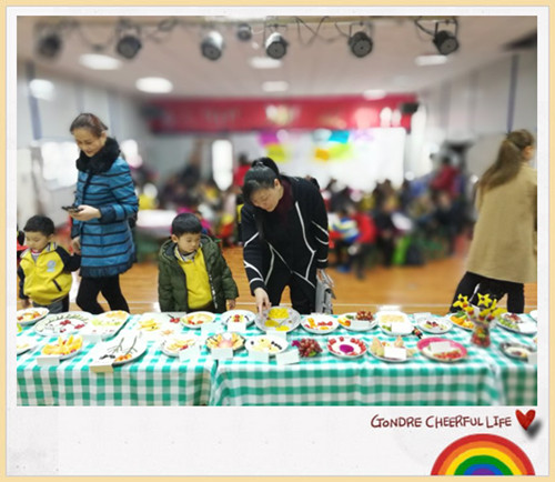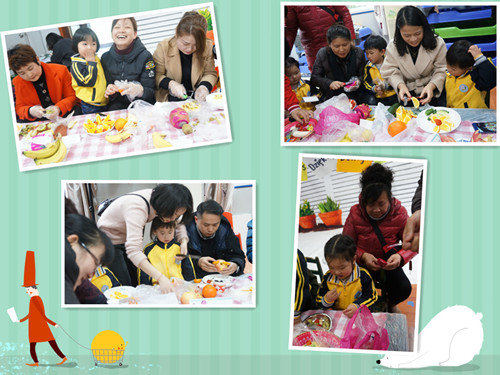 讲解完,我们的家长和孩子们都坐在一起,准备动手制作拼盘喽!