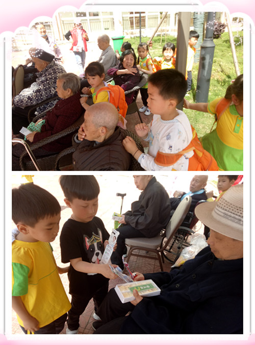 纲要中指出:“幼儿园应与家庭、社会密切配合,共同为幼儿创造一个良好的成长环境。”然而孝敬长辈、尊敬长辈是中华民族的传统美德。在4月17日的上午,花朵一班的孩子们在老师的带领下来到了嘉佑敬老院。