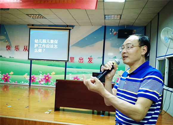 月11日,汉寿县县人民检察院深入县机关幼儿园以“沐浴法治阳光,关爱儿童成长”为主题给幼儿园的全体教职工和幼儿上了一堂生动的法治课。